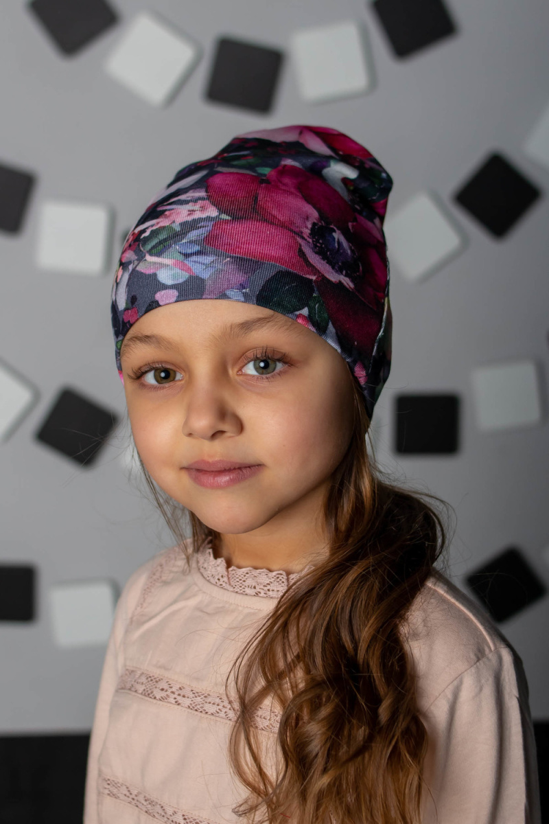 Детская шапочка для девочек в современных приятных цветах.