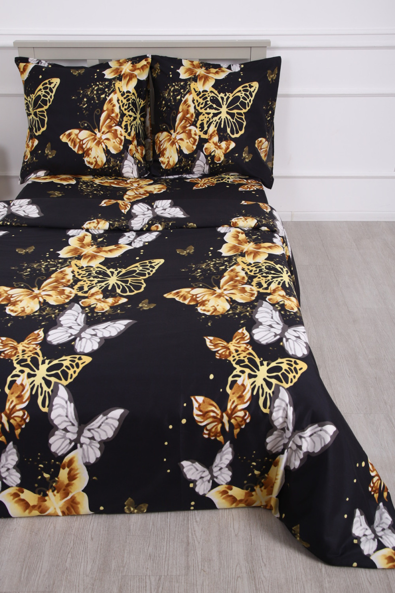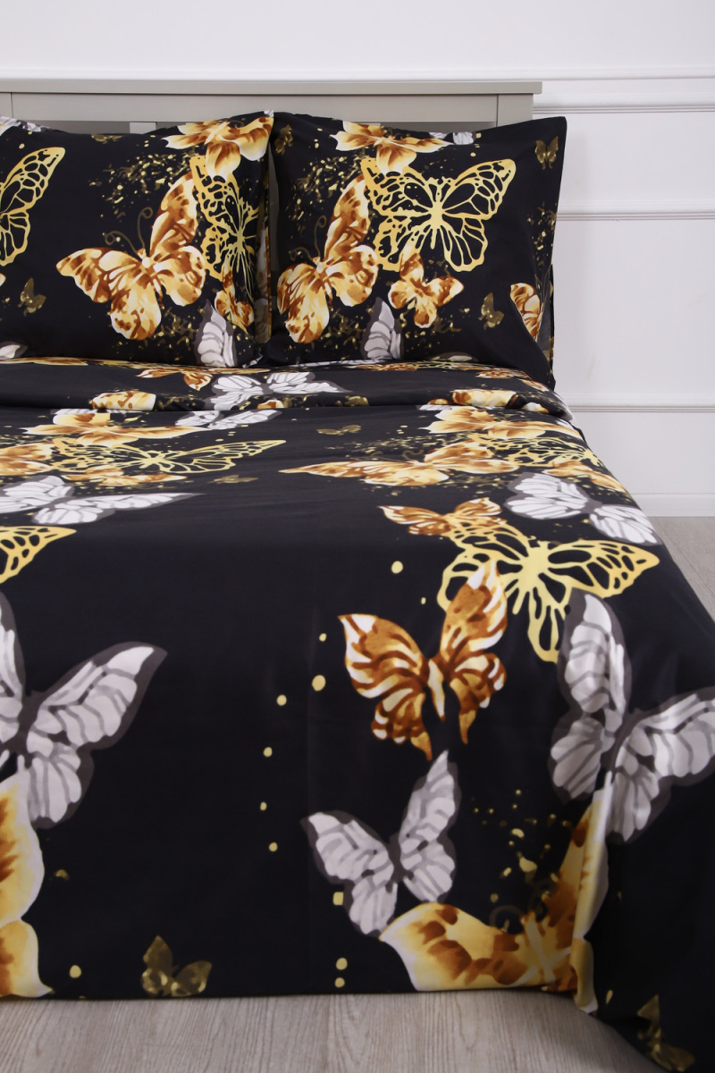 Комплект постельного белья с золотыми бабочками на черном фоне - современный дизайн, создающий уютную свежесть и комфорт в вашей спальне.